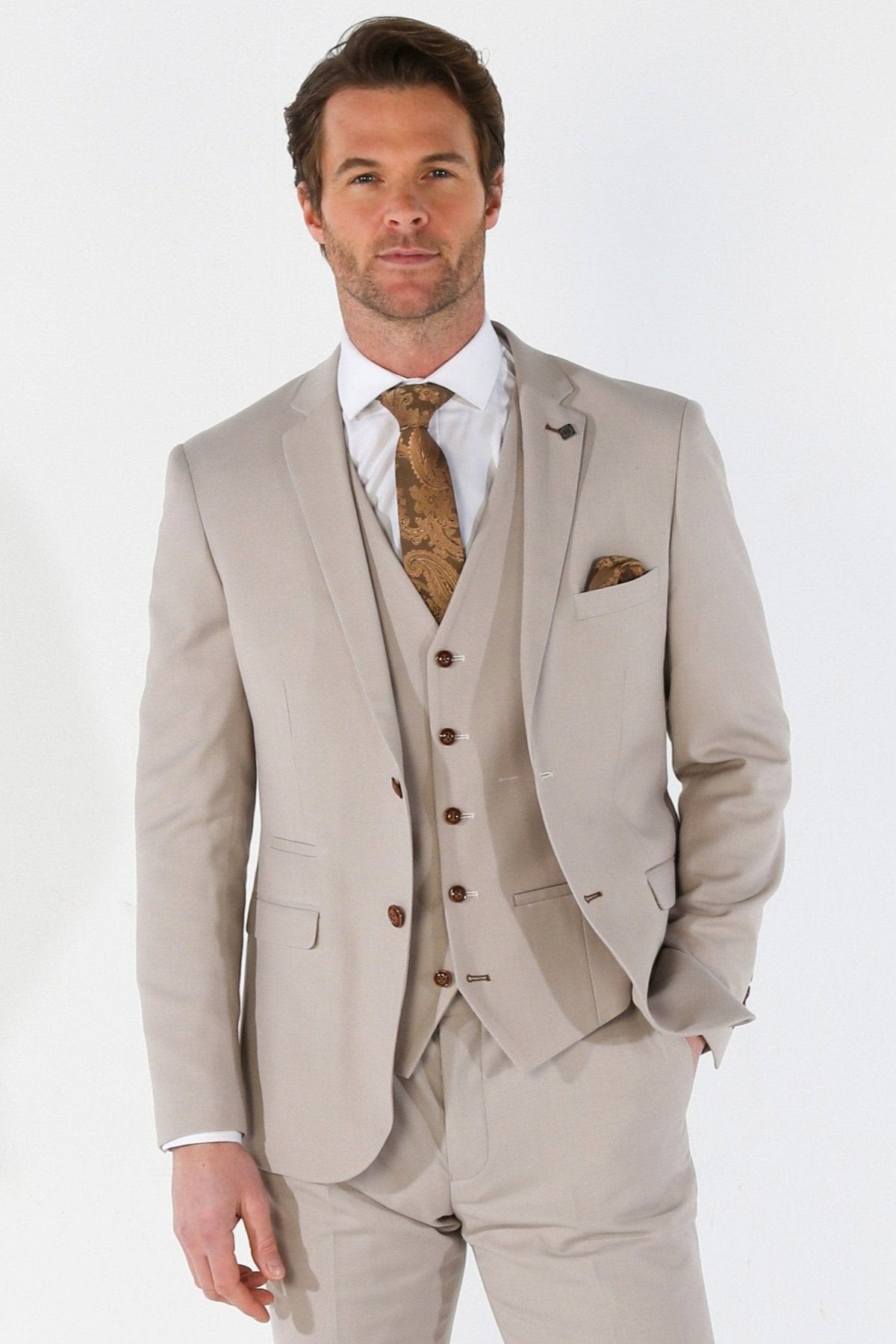Mayfair Men's 3-Piece Beige Birdseye Wedding Suit.